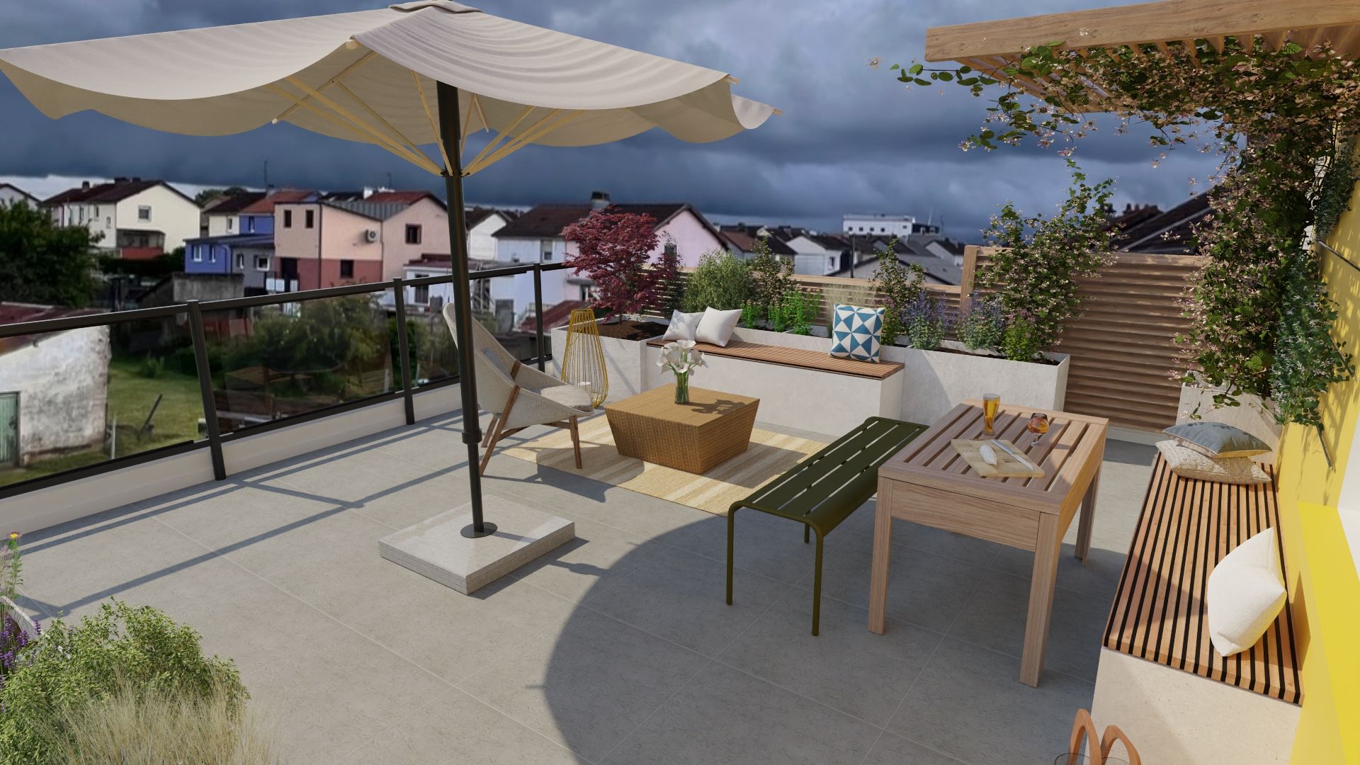 toit-terrasse cosy et végétalisé, pensé pour allier détente, intimité et confort au quotidien.