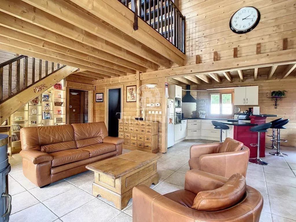 cuisine et le salon pour moderniser l’espace tout en conservant le charme authentique du bois. L’objectif était d’optimiser les volumes et la luminosité, tout en créant une ambiance chaleureuse et élégante, fidèle à l’esprit montagnard du chalet.