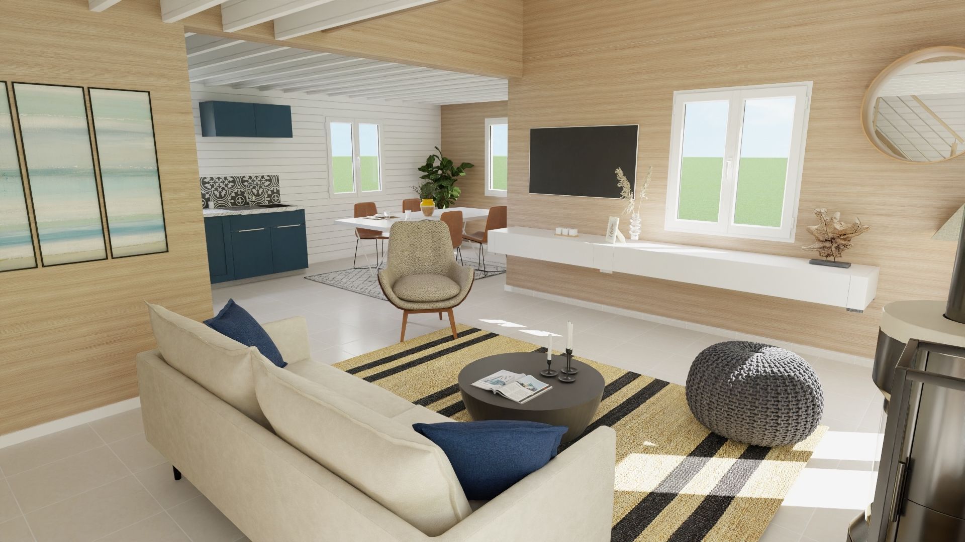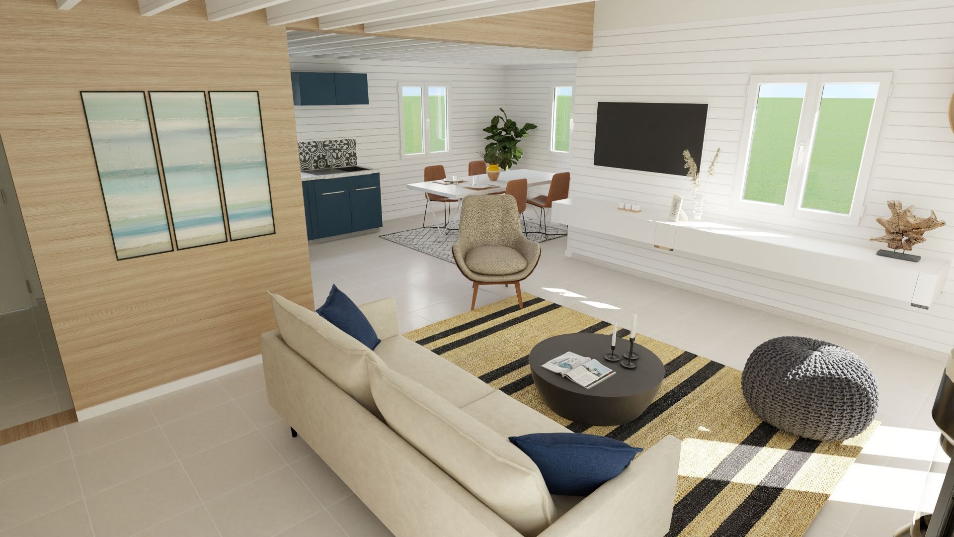 Les modélisations 3D ont permis d’affiner chaque choix décoratif et d’optimiser l’aménagement avant la mise en œuvre, garantissant une harmonie parfaite entre le bois, la lumière et les éléments contemporains. Le résultat final est un chalet revisité, accueillant et sublimé, prêt à offrir un cadre de vie chaleureux et authentique.